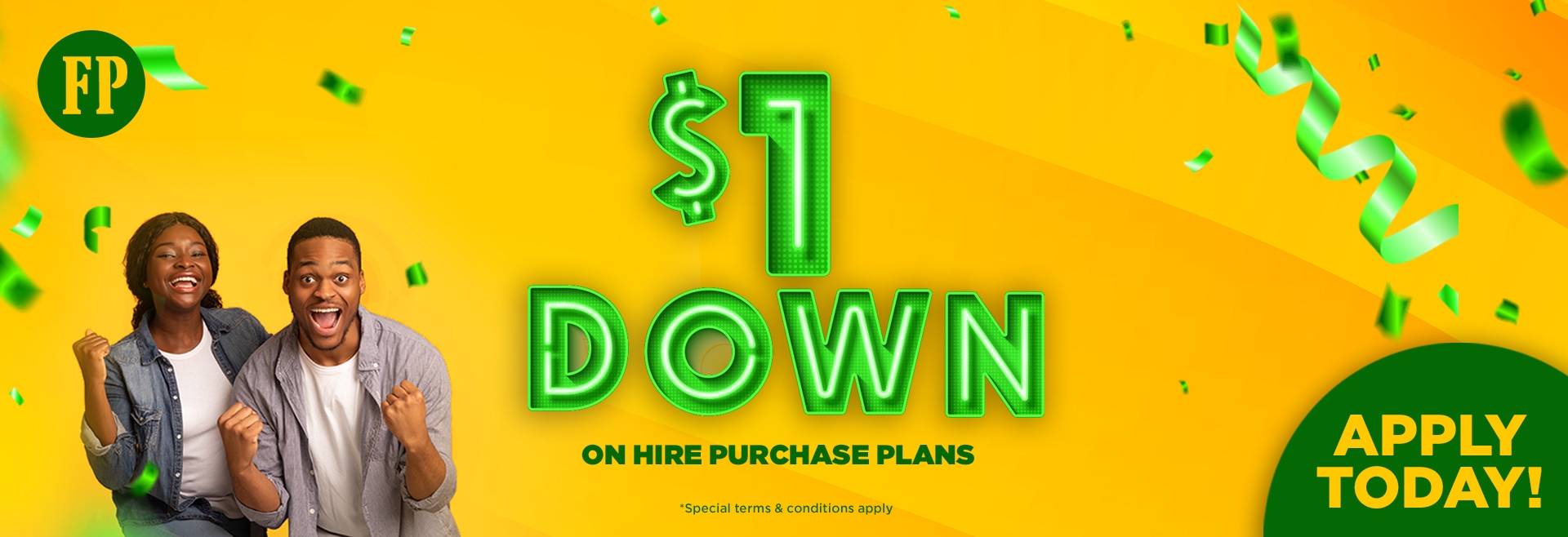 Choose from a variety of Hire Purchase Plans ranging from 3 months to 36 months and enjoy Low Interest Rates, affordable payment plans and flexible payment options