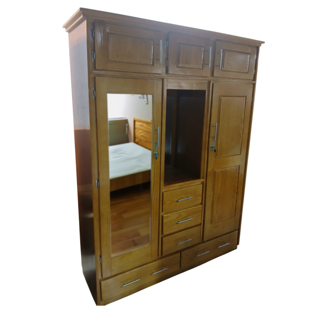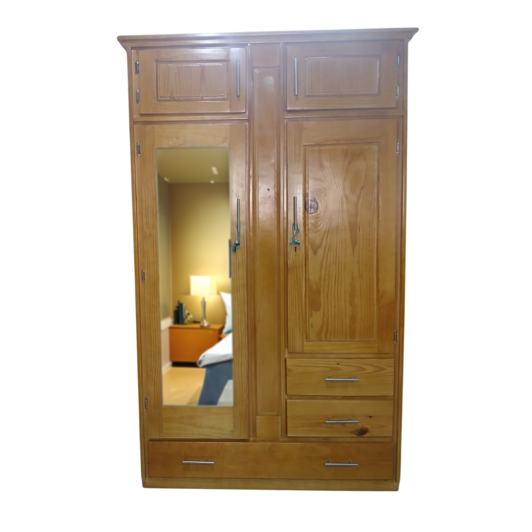3 Drawer 3 Door Pinewood Regular Luggage Top Wardrobe